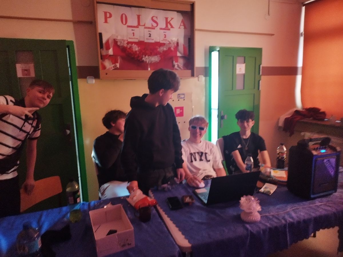 że co najmniej 51 osób uczestniczyło w zabawie. Inicjatorem wydarzenia był przewodniczący SU Karol Wesołowski, znany jako szkolny DJ Karols, kończący wraz z końcem roku szkolnego swoją pięcioletnią kadencję. Wspierali go Gabriel Pociask i Antoni Zych, również kończący swoją służbę w samorządzie. To moje trzy Anioły, moi Trzej Muszkieterowie i jednocześnie ogromna nagroda oraz duma za 25 lat opieki nad Samorządem Uczniowskim. Dyskoteka odbyła się za aprobatą pani dyrektor Moniki Hołdyńskiej oraz przy wsparciu pani Anny Wesołowskiej, pani Kamili Bieć i pani Agnieszki Kołodziej. Dziękuję za obecność, czuwanie nad bezpieczeństwem dzieci/młodzieży oraz pomoc. Podczas wydarzenia dołączyliśmy również do akcji „Diss na raka” Fundacji Cancer Fighters , tańcząc i słuchając piosenki wykonanej przez 11-letnią Maję, walczącą o życie podczas kolejnego nawrotu choroby nowotworowej. Wielka mała wojowniczka. Swoją cegiełkę dołożyliśmy dzięki uczennicy klasy 8a Mai Osipowicz. Nawet w weekend Samorząd Uczniowski nie zwolnił tempa i dokonał wpłaty 50 zł z samorządowej sakiewki. Reasumując dziękuję wszystkim za obecność, energię i klimat. To był jeden z tych wieczorów, które zostają w pamięci na długo. Zapraszamy po niedzieli na stronę szkoły, gdzie oprócz zdjęć będzie można obejrzeć transmisje z dyskoteki.