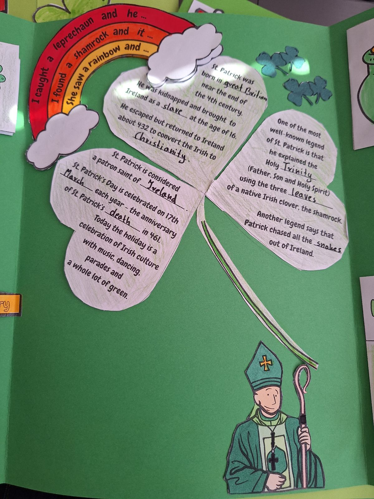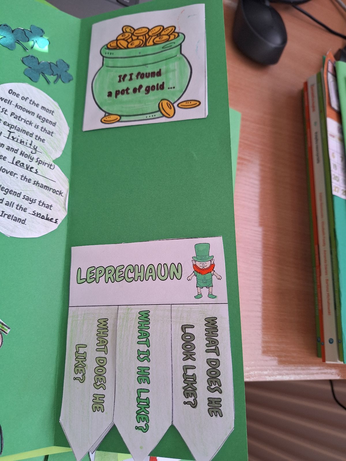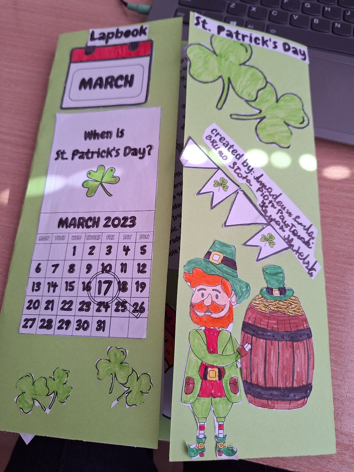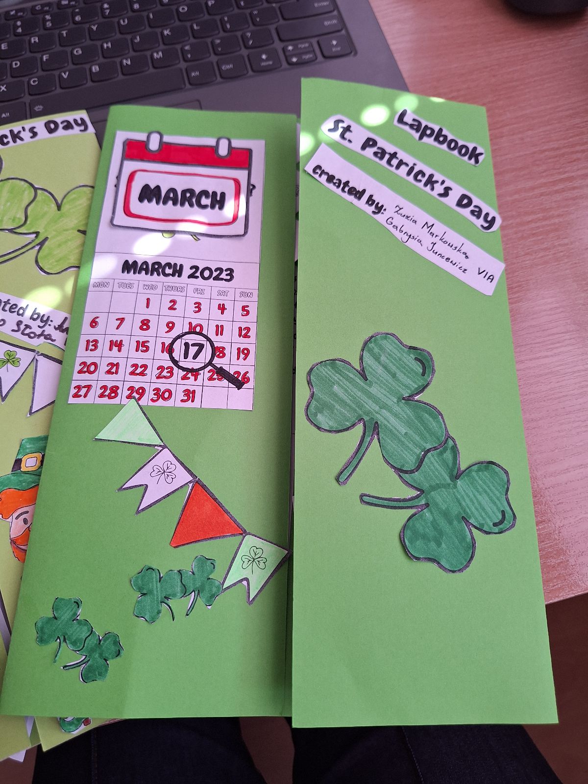 Najważniejszym elementem zajęć było przygotowanie przez uczniów lapbooków, czyli kreatywnych teczek tematycznych. Każda grupa w interesujący sposób przedstawiła informacje o tradycjach, zwyczajach oraz ciekawostkach związanych z Irlandią. Prace uczniów były bardzo pomysłowe, starannie wykonane i pełne interesujących treści.