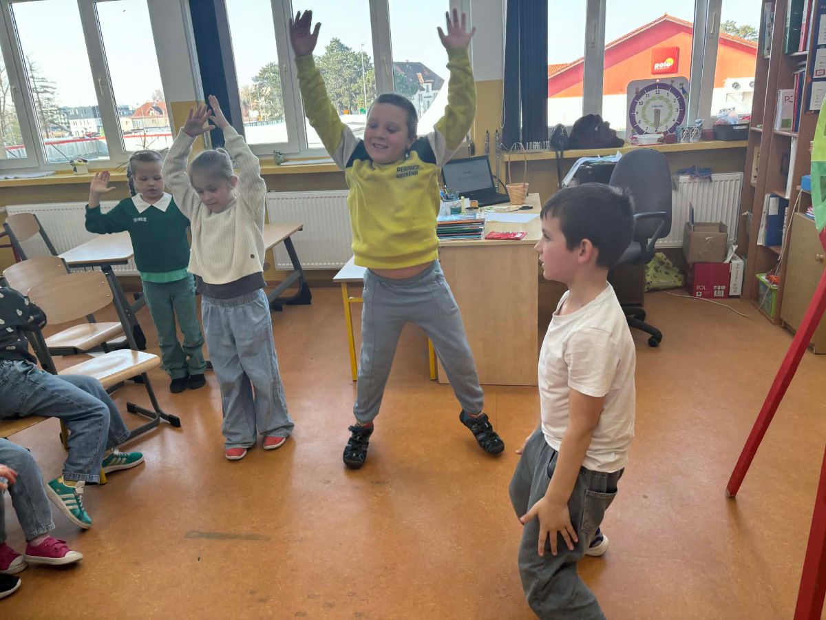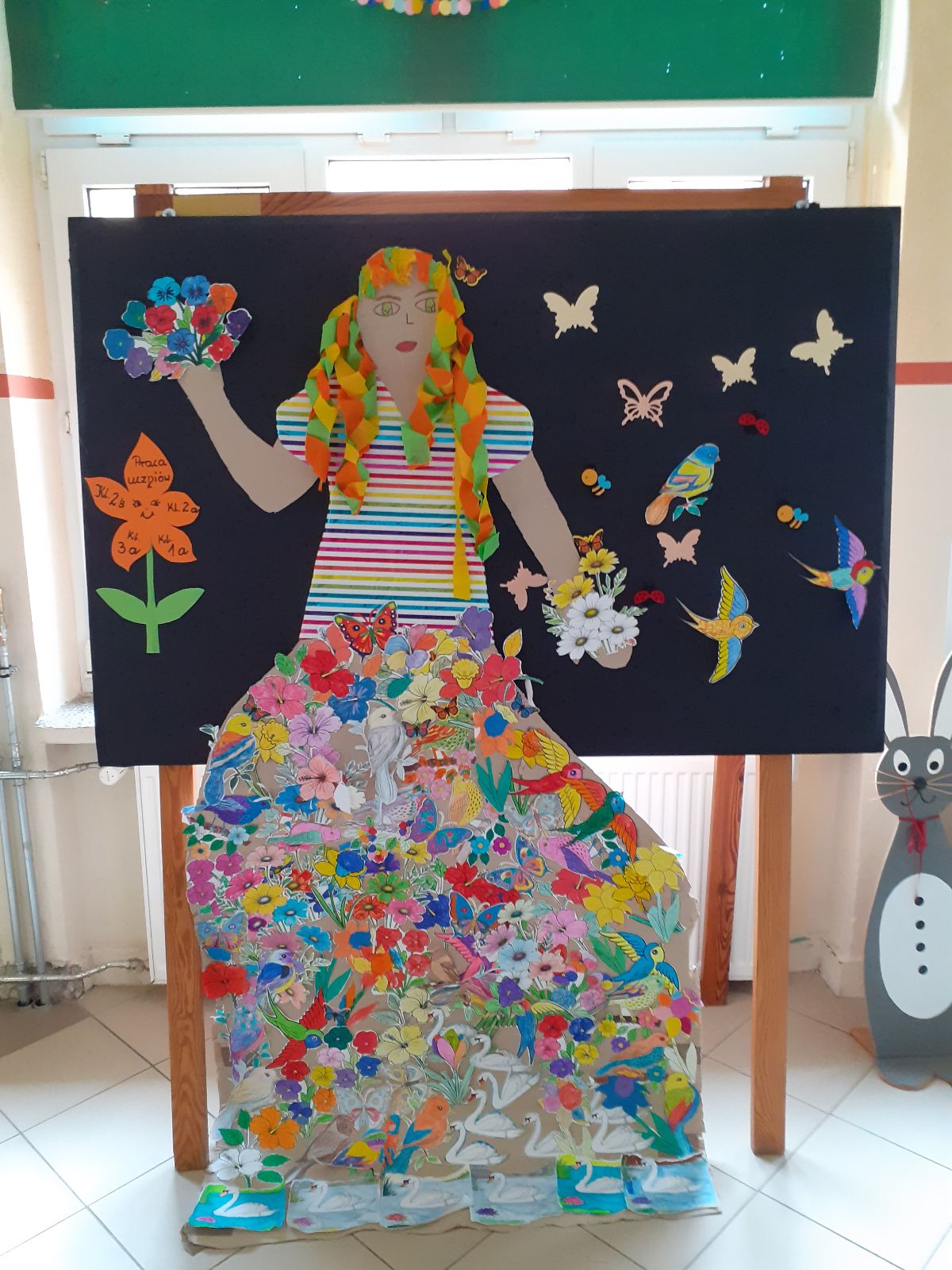 23 marca przywitał nas piękną, słoneczną pogodą. Uczniowie klas I-III świętowali powitanie wiosny w nietypowy sposób. Każda klasa zamieniła się w wiosenne studio. Był: „Wiosenny ogródek”, „Koło fortuny”, „Muzyczne inspiracje”, „Quizy, zagadki i krzyżówki”, „Piękna, kolorowa Pani Wiosna”. Dzieci przechodziły od studia do studia i wykonywały wiosenne zadania. Efektem był m.in. klasowy ogródek, poszerzenie wiedzy o zwiastunach wiosny, ćwiczenia ruchowe. Na koniec wykonaną Panią Wiosną udekorowały szkolny korytarz. To był piękny dzień!