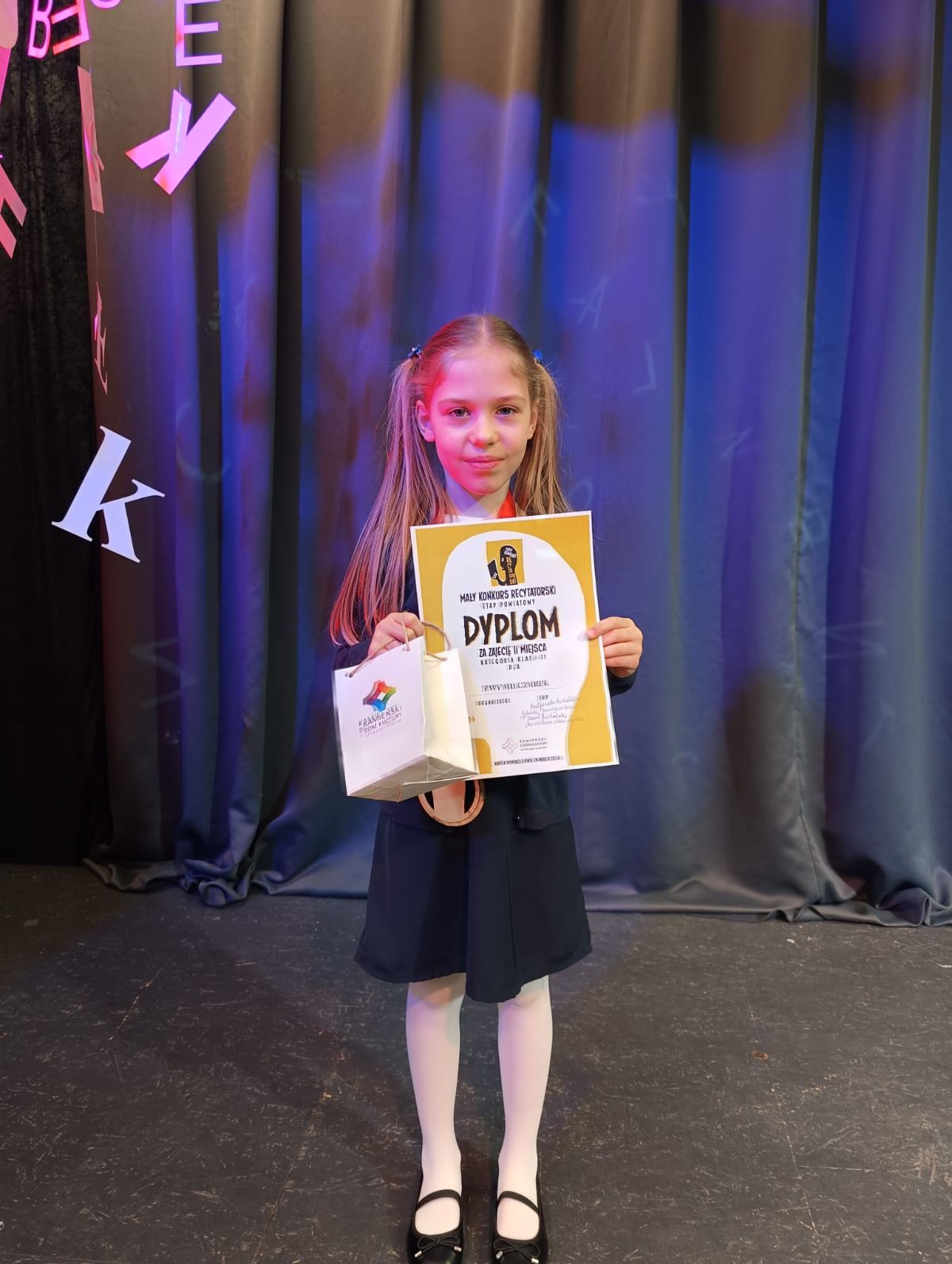 W sobotę, 28 marca 2026 roku, odbył się w Kamieniu Pomorskim Mały Konkurs Recytatorski na szczeblu powiatowym. Naszą szkołę, w kategorii klas I -III, reprezentowała uczennica klasy 2 B Ewa Milczarek, która 4 marca wygrała konkurs recytatorski na etapie szkolnym. Miło mi poinformować, że Ewa Milczarek zajęła II miejsce w konkursie recytatorskim na szczeblu powiatowym. Jesteśmy bardzo dumni z naszej uczennicy i życzymy dalszych sukcesów recytatorskich.