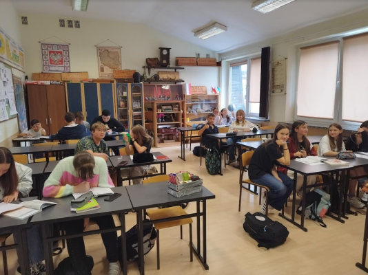 W dniu 3 października 2023 roku, na 7 godzinie lekcyjnej ,uczniowie klasy 8a udzielali korepetycji swoim ukraińskim kolegom i koleżankom.