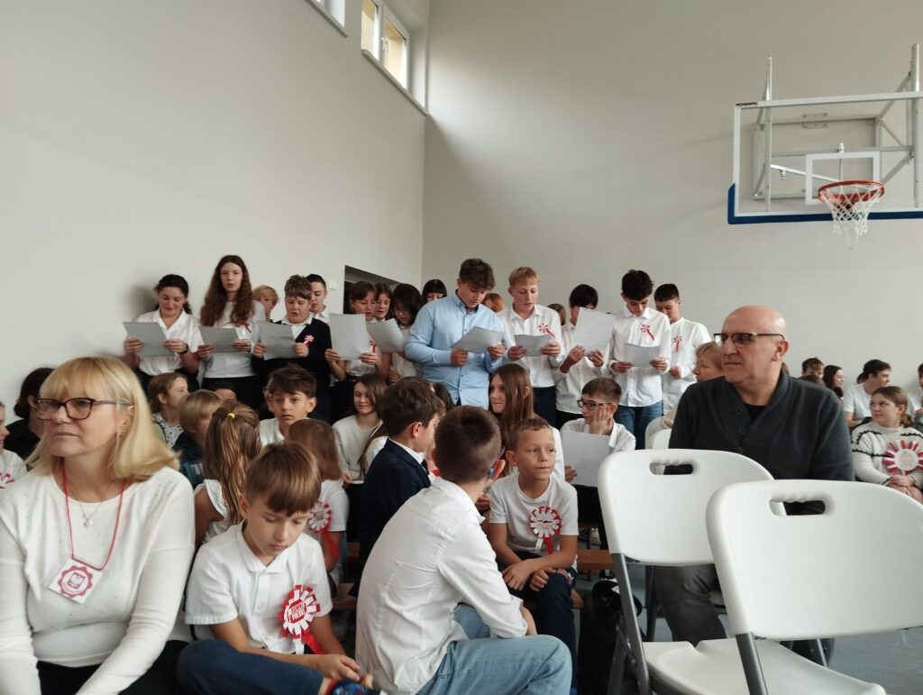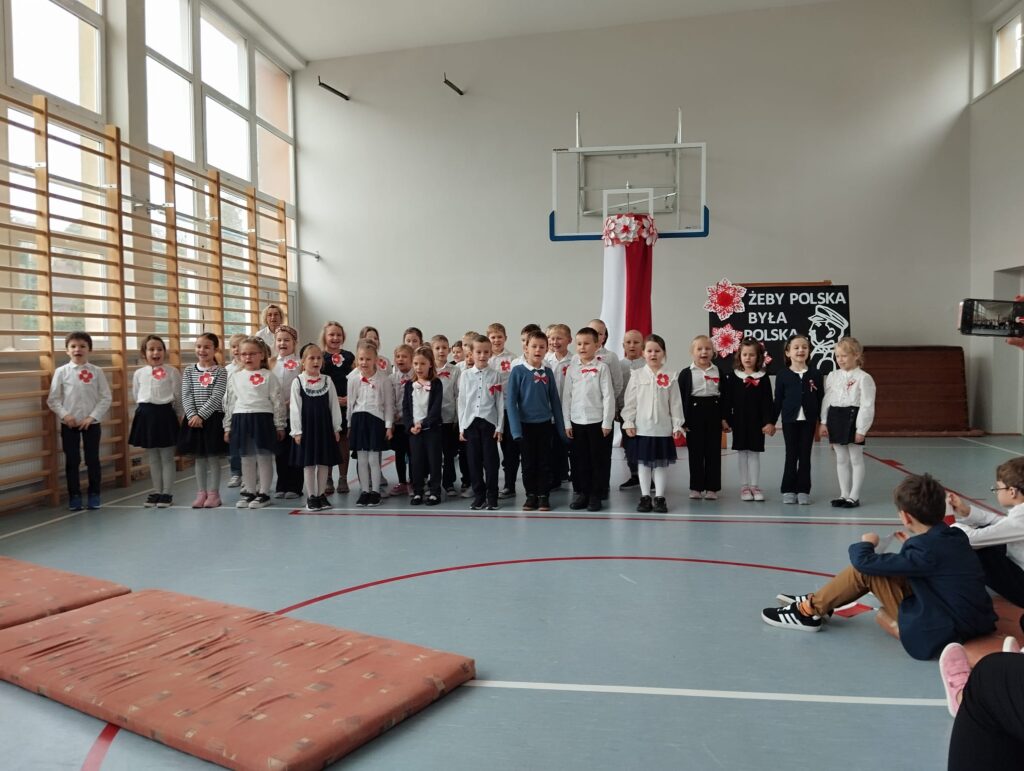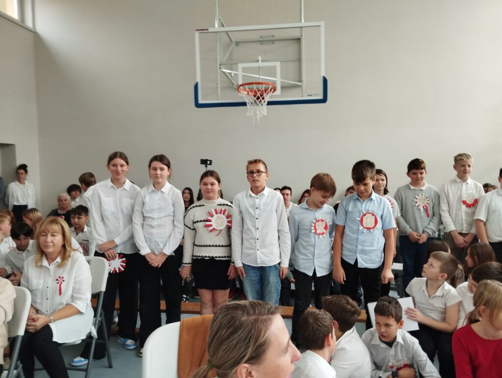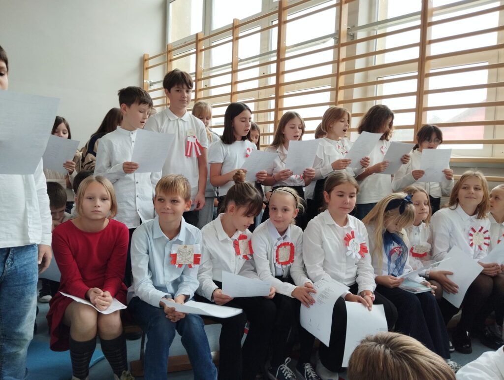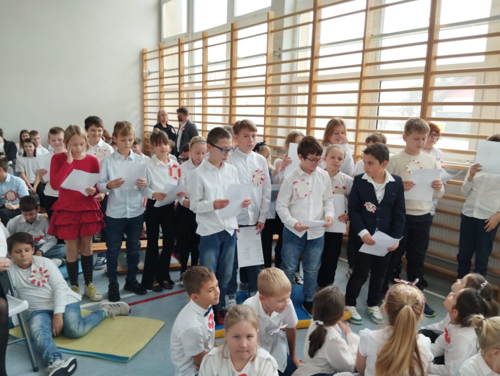 W wydarzeniu brały udział wszystkie klasy wraz z wychowawcami. Dzieci i nauczyciele wspólnie uczcili pamięć o bohaterach narodowych oraz ich niezłomnej walce o wolność. W części artystycznej uczniowie wprowadzili w atmosferę wydarzeń poprzedzających datę 11 listopada 1918 roku symbolizującą odzyskanie przez Polskę wolności po 123 latach niewoli, wspólne odśpiewali hymn oraz patriotyczne pieśni, a także wysłuchali wierszy . Przygotowana przez uczniów opowieść, o trudnej drodze do wolności, była wyrazem misji, jaką postawiła przed sobą szkoła: wychowania dzieci w duchu patriotyzmu i szacunku do Ojczyzny. Niech ten duch patriotyzmu pozostanie w nas nie tylko z racji Święta Niepodległości, ale także w hołdzie wszystkim poległym za wolność naszej ojczyzny. Anna Danielczyk, Renata Klimecka.