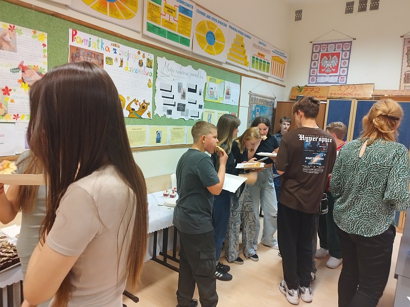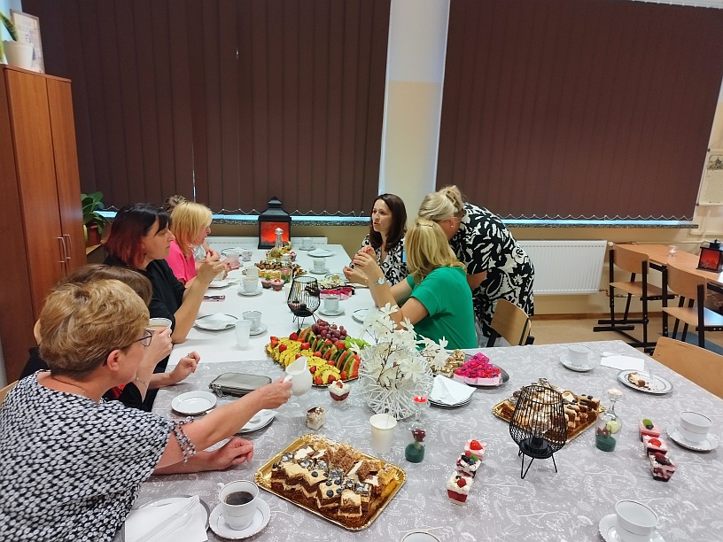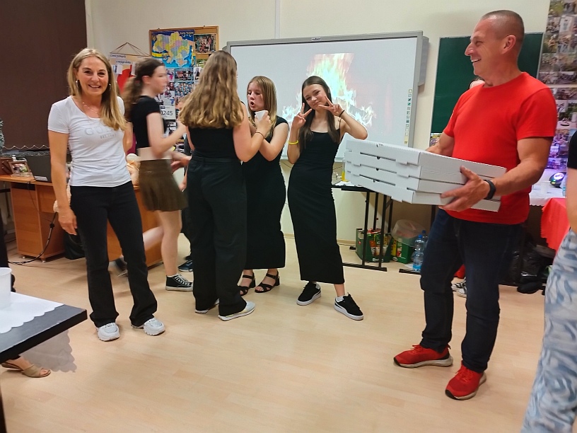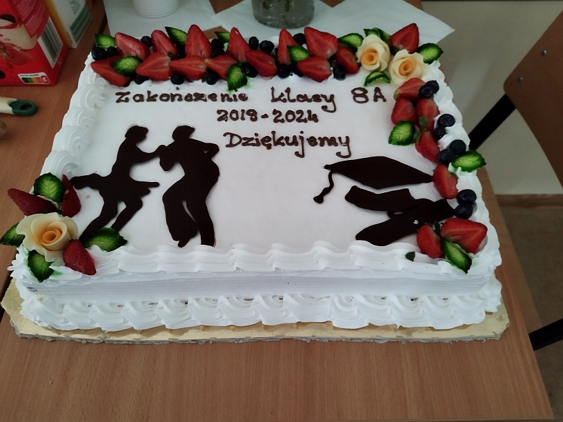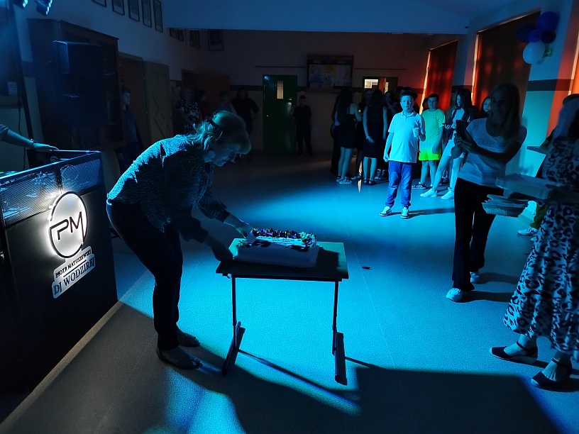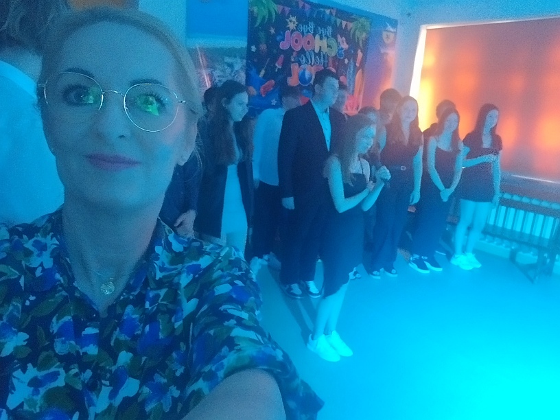 Z plakatów wynikało, że uczniowie klasy 8a zapraszają na Disco Party kolegów i koleżanki z klas młodszych. Jednak jako uczestnik tego piątkowego wydarzenia stwierdzam jednoznacznie, że był to bal w szkole. Począwszy od oprawy muzycznej, o którą zadbał DJ PM Piotr Matuszewski, poprzez dekorację z elementami takimi jak: balony, ogromny, biały tort, hollywoodzkie prezenty dla wychowawczyni klasy 8a, catering, domowe ciasta, stroje, kominki, spersonalizowany leżak, miś Tadeusz i znamienici goście. Oprawa artystyczna przygotowana przez wyjątkowo wyjątkową klasę 8a. Wszystko przygotowali Rodzice moich uczniów. Pięć godzin wspaniałej zabawy. Pięć godzin przebojowej muzyki. Pięć godzin prawdziwych wzruszeń. Pięć godzin przyglądania się fenomenalnemu zjawisku jakim jest metamorfoza mojej ukochanej klasy. Moje dzieci pokazały, że siła jest w jedności, że razem możemy więcej, żeby nie napisać możemy wszystko. Jako wychowawczyni tej cudownej, niepowtarzalnej, wyjątkowej, w każdym calu klasie, chciałabym podziękować przede wszystkim moim dzieciom. Stanęliście na wysokości zadania . 90% uczniów obecnych na balodyskotece, 100% z nich bawiących się tak, że mogę powiedzieć, iż jestem z Was dumna. Kocham Was i nie wstydzę się tego. Na drugim miejscu chciałabym podziękować Rodzicom, bez których tej cudownej zabawy po prostu by nie było. Z przykrością stwierdzam, że nie jestem ani pomysłodawczynią, ani realizatorką tej genialnej zabawy. Po trzecie chciałabym podziękować wszystkim nauczycielom, którzy zaszczycili nas (czyli klasę 8a)swoją obecnością, pani pielęgniarce oraz pani dbającej o porządek w pawilonie IV-tym. Dziękuję także uczniom klasy 6a, 7a i 7b, którzy pięknie bawili się w tym ważnym dla moich dzieci dniu. Brawo dla Was! I na samym końcu dziękuję pani dyrektor Monice Hołdyńskiej, która nie tylko bawiła się razem z nami, ale także przygotowała wzruszającą, pamiątkową prezentację multimedialną klasy 8a. Jeśli chodzi o mnie to nigdy jeszcze Rodzice uczniów nie podziękowali mi za wychowawstwo tak pięknie, jak przydarzyło się to właśnie 14 czerwca 2024r. Może niesłusznie, ale czułam się gwiazdą wieczoru. Kimś ważnym dla Waszych dzieci. Jak wielka szkoda, że tak rzadko zdarzają się takie chwile, ale z drugiej strony może dlatego śa tak bardzo wyjątkowe? Jak podziękować za te piękne chwile słowami? Nie wiem, chyba nie umiem. Posłużę się fragmentem utworu Wisławy Szymborskiej