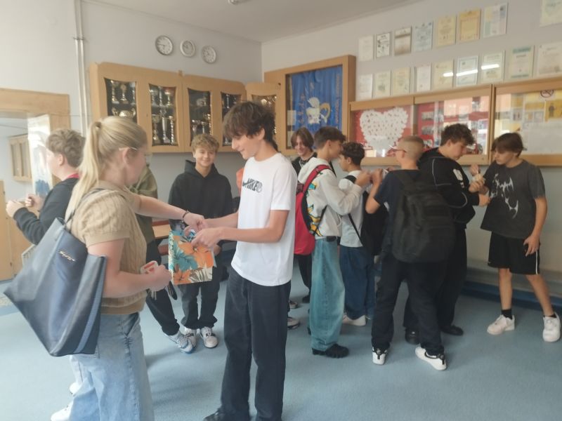Podczas przerw przedstawiciele SU rozdawali uczniom, na szkolnych korytarzach, karteczki z miłymi życzeniami i ciepłymi słowami. Wystarczyło jedno spojrzenie, by zauważyć, że każdy, kto sięgnął po karteczkę, od razu się uśmiechał, co doskonale widać na zdjęciach. To piękna inicjatywa pamiętająca jeszcze gimnazjum, która pokazała, jak niewiele potrzeba, by poprawić komuś dzień i stworzyć w szkole atmosferę życzliwości i wzajemnego szacunku.