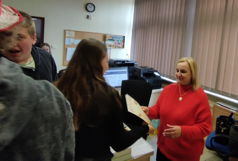 kompetentna. Nikogo nie odsyła z tzw. kwitkiem. Z tego powodu Samorząd Uczniowski wręczył pani Oli dyplom i podarował słodkie czekoladki. Dziękujemy Pani Aleksandro za to, że zawsze ma Pani czas