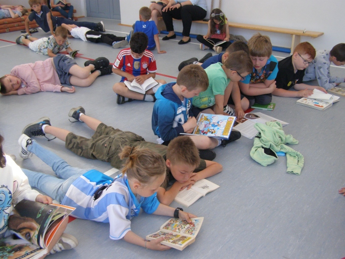 Tego dnia uczniowie przynieśli swoje ulubione książki, prezentowali je innym, wysłuchali głośnego czytania przez nauczyciela, czytali w wybranych miejscach i pozycjach.