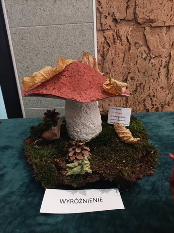 Uczniowie klas 4-7 na lekcjach plastyki wykonywali grzyby z materiałów pochodzących z recyklingu – butelek plastikowych, kartonu, wytłaczanek po jajkach i przyozdobili je liśćmi, mchem i zwierzątkami z plasteliny. Wyszła zachwycająca i bogata dekoracja okien szkolnych korytarzy, a najpiękniejsze prace, które spełniały wymagania, zostały zgłoszone do konkursu organizowanego przez Woliński Park Narodowy w Międzyzdrojach. Twórcami tych grzybów były: Zosia Udycz, Ola Jama, Nina Źródlewska, Lena Bednarczyk, Zosia Hołdyńska, Natalka Fifielska, Maja Osipowicz, Marcel i Kacper Strzałkowscy. Komisja konkursowa wyróżniła grzyby Zosi Udycz i Kacpra Strzałkowskiego. Gratulujemy!