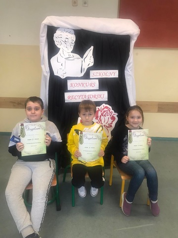 13 marca 2023 r. odbył się Szkolny Konkurs Recytatorski dla klas I-III. Wystąpiło 9 uczestników. Po podaniu kilku wskazówek dotyczących występu rozpoczęły się recytacje uczniów. Jurorzy oceniali prezentacje biorąc pod uwagę następujące kryteria: dobór repertuaru, interpretacja utworu, kultura słowa, ogólny wyraz artystyczny.