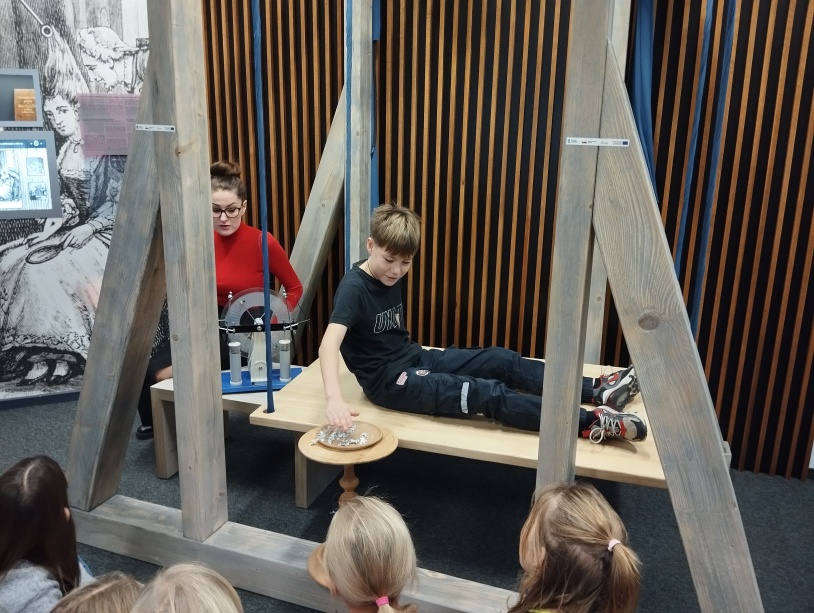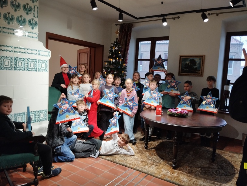Uczniowie zwiedzili Muzeum Historii Ziemi Kamieńskiej oraz Dworek Kleista. Tu poeksperymentowali z prądem, poznali historię i dorobek naukowy Edwalda Kleista. Pod choinką w salonie czekały na wszystkich słodkie upominki od. Św. Mikołaja, które trzeba było wykupić świątecznym wierszykiem, piosenką lub obietnicą. Swoją obecnością zaszczycił nas też dyrektor muzeum pan Grzegorz Kurka. Po historycznych i naukowych doznaniach przyszedł czas na prawdziwe mikołajkowe szaleństwo w bawialni Kolorado. Tu oprócz zabawy czekał na nas konkurs na najładniejszy, własnoręcznie wykonany mikołajkowy worek i wspólne ubieranie choinki.