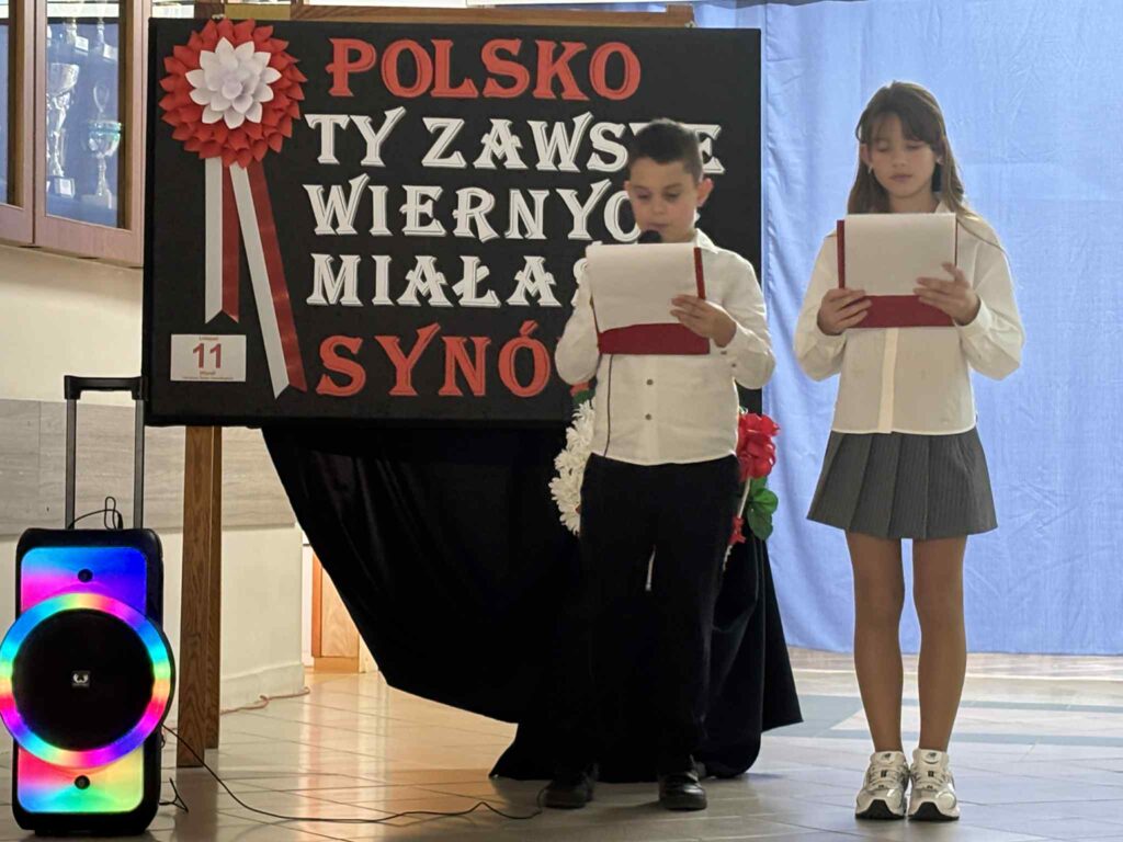 12 listopada dla klas IV- VIII odbył się montaż słowno- muzyczny przygotowany przez uczniów pod opieką p. Anny Danielczyk i p. Renaty Klimeckiej. O dekorację zadbała pani Mirosława Romańczyc.