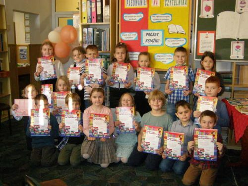W naszej szkole pasowanie uczniów klas pierwszych na czytelników biblioteki na stałe wpisało się do kalendarza uroczystości szkolnych i jest atrakcyjną formą nauki przez zabawę. Były bajkowe zagadki, wierszyki i piosenki. Nasi nowi czytelnicy otrzymali pamiątkowe dyplomy, które będą im przypominały o tym uroczystym wydarzeniu. Potem wszyscy zostali zaproszeni do częstego odwiedzania biblioteki i korzystania z jej zbiorów. Po takim wspólnym spotkaniu biblioteka będzie kojarzyła się najmłodszym czytelnikom z miejscem bezpiecznym, przyjaznym, radosnym, gdzie uczniowie są zawsze mile widziani.