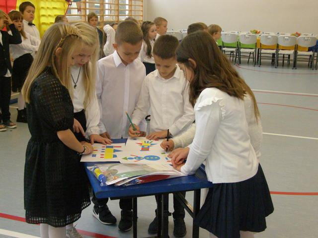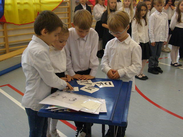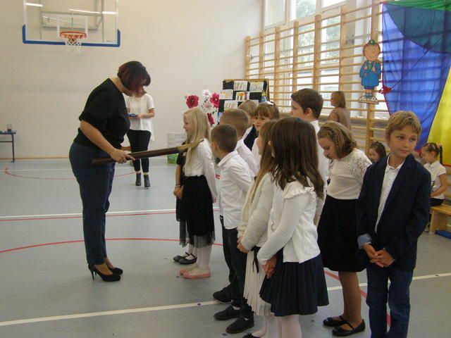 28 października 2022 r. odbyła się w naszej szkole uroczystość Pasowania na Ucznia. Jest to szczególny dzień, który na długo pozostanie w pamięci każdego ucznia klasy pierwszej. W tym dniu dzieci oficjalnie przyjęte zostały do grona uczniów szkoły. Podczas uroczystości pierwszoklasiści pokazali, że potrafią pięknie śpiewać i recytować wiersze, a także wykazali się wiedzą i umiejętnościami zdobytą w ciągu dwóch pierwszych miesięcy nauki. Najważniejszą częścią uroczystości, na którą wszyscy czekali było pasowanie wielkim piórem przez Dyrektora Szkoły- panią Monikę Hołdyńską. Wszystkim pierwszoklasistom w tak ważnym dla nich dniu życzymy wielu sukcesów na nowej drodze obowiązków szkolnych.