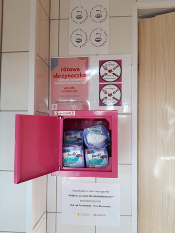 Do szkoły dotarł zapas darmowych podpasek na cały rok.