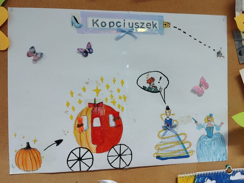odpowiedzialności za wspólne dzieło. W cyklu lekcji uczniowie zapoznali się z treścią wybranych bajek, adaptacją filmową „Kopciuszka”, a także dokonali przekładu intersemiotycznego wybranych przez utworów. Efektem działań uczniów były pięknie wykonane prace: plakaty i makiety.