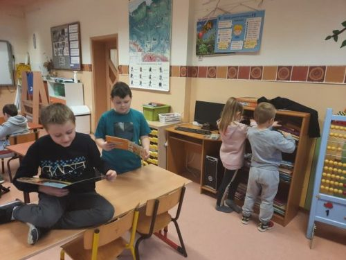 Tego dnia czytaliśmy wszędzie, gdzie się dało: w klasach, na korytarzach, w bibliotece, czytelni. Uczniowie czytali lektury szkolne, ulubione książki przyniesione z domu lub wybrane z klasowych zasobów pozycje literackie. Naszym najmłodszym uczniom ciekawe opowiadanie z książki „Pierwszy alfabet” przeczytała pani bibliotekarka. Do akcji zachęciliśmy całą społeczność szkolną plakatami oraz poprzez informacje przesłane w dzienniku elektronicznym.