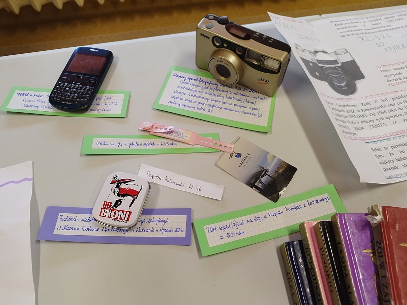 z minionych finałów WOŚP, test ciążowy i wiele, wiele innych przedmiotów. Niektóre z wymienionych pamiątek, będących źródłem historycznym uczniowie przynieśli do szkoły i opatrzyli je opisem. Prace
