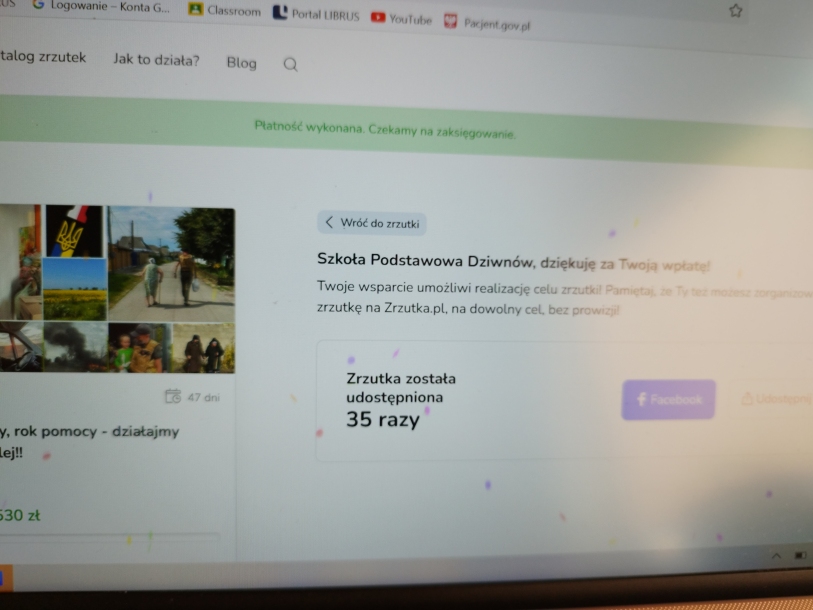 SU dowodu wpłaty. Jesteśmy wdzięczni za ogromne zaangażowanie pani Sabiny Greli, w akcję pomocową. Dodatkowo pani Sabina nawiązała kontakt z panem Bartłomiejem Wadasem, twórcaą zbiórki, który zareagował na naszą zbiórkę dodatkowym komentarzem cytuję: