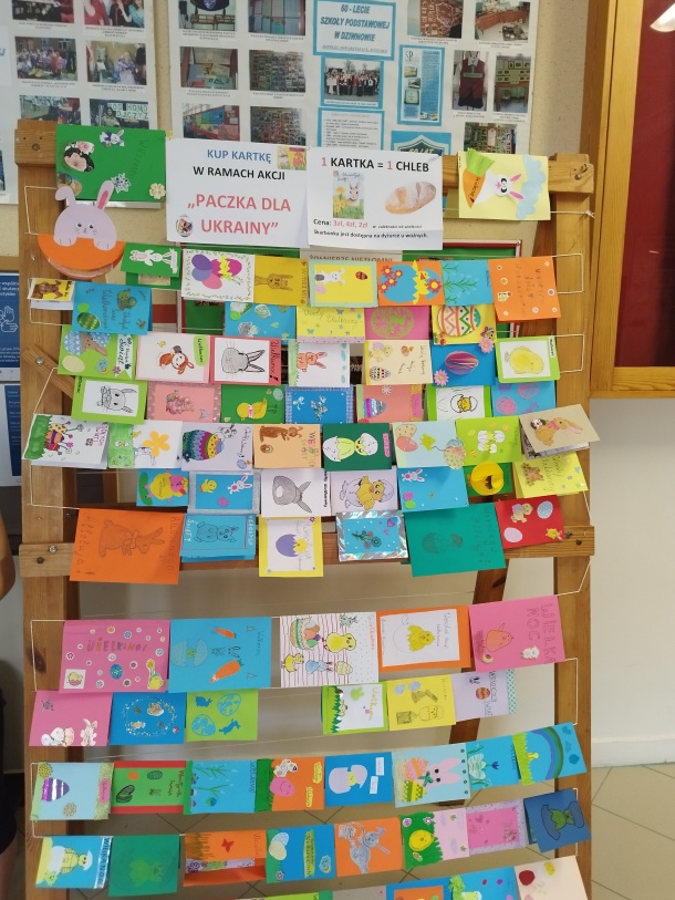 Na koniec bardzo dziękujemy pani Sabinie Greli, która wraz z uczniami przygotowała świąteczne kartki sprzedawane na korytarzu głównym. W związku z tym, że sprzedaż prowadzona była do środy, właściwie do ostatnich minut pracy szkoły, kwota jaka została uzyskana ze sprzedaży tychże kart, zostanie doliczona do naszej rocznej zbiórki, przy kolejnym zliczaniu pieniędzy, po otrzymaniu przez