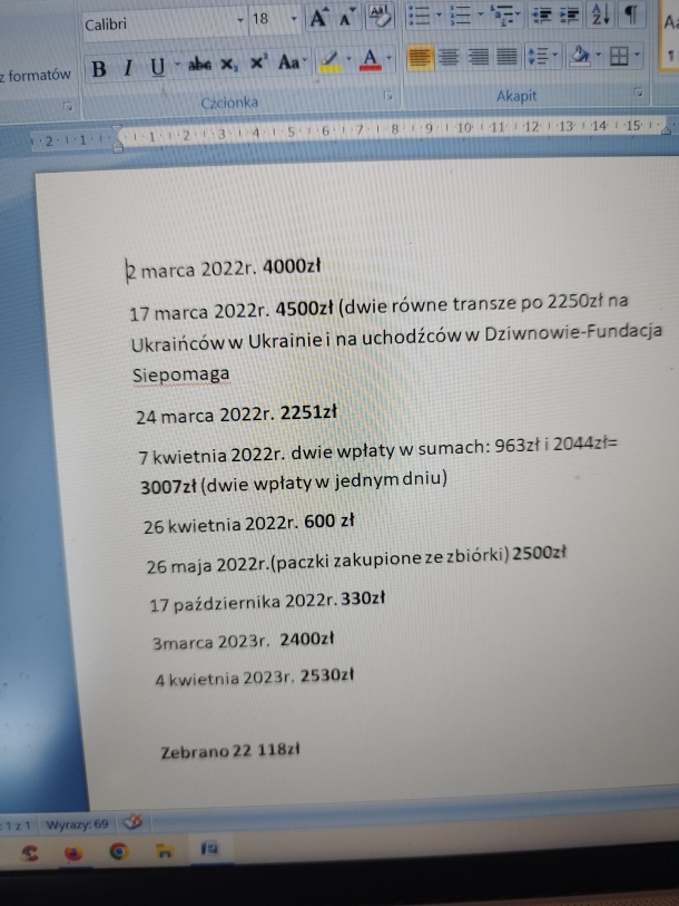 A teraz podsumowanie ostatniej zbiórki pomocowej, na paczki dla Ukraińców żyjących bez prądu, wody i dostępu do cywilizacji, na terenach zdewastowanych przez wojnę i ruski mir.