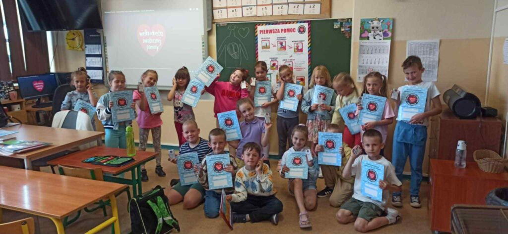 Głównym celem Programu jest poznanie przez uczniów zasad pierwszej pomocy oraz doskonalenie umiejętności podejmowania przez nich, jako świadków zdarzenia działań ratujących życie. Program ten jest akcją ogólnopolską Wielkiej Orkiestry Świątecznej Pomocy. W bieżącym roku szkolnym dzieci z klas I-III uczyły się wzywać pomoc w sytuacji zagrożenia, ćwiczyły pozycję boczną bezpieczną oraz resuscytację krążeniowo- oddechową na fantomie. Poznały również co to jest łańcuch przeżycia. Do ćwiczeń dzieci otrzymały książeczki „Mój podręcznik do nauki pierwszej pomocy” oraz tekturowy telefon. Nauczycielami przeprowadzającymi zajęcia są Ewa Trzebińska- Brzezińska i Beata Jabłonowska- Naumuk.