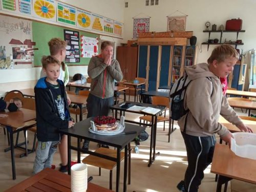 Bardzo dziękujemy mamie Aleksandry, za bezcenną pomoc , przy zorganizowaniu, tego klasowego święta. Po torcie szybko zostało tylko słodkie wspomnienie, gdyż zniknął z talerzyków, z prędkością światła. Był przepyszny. Oby więcej takich słodkich dni….