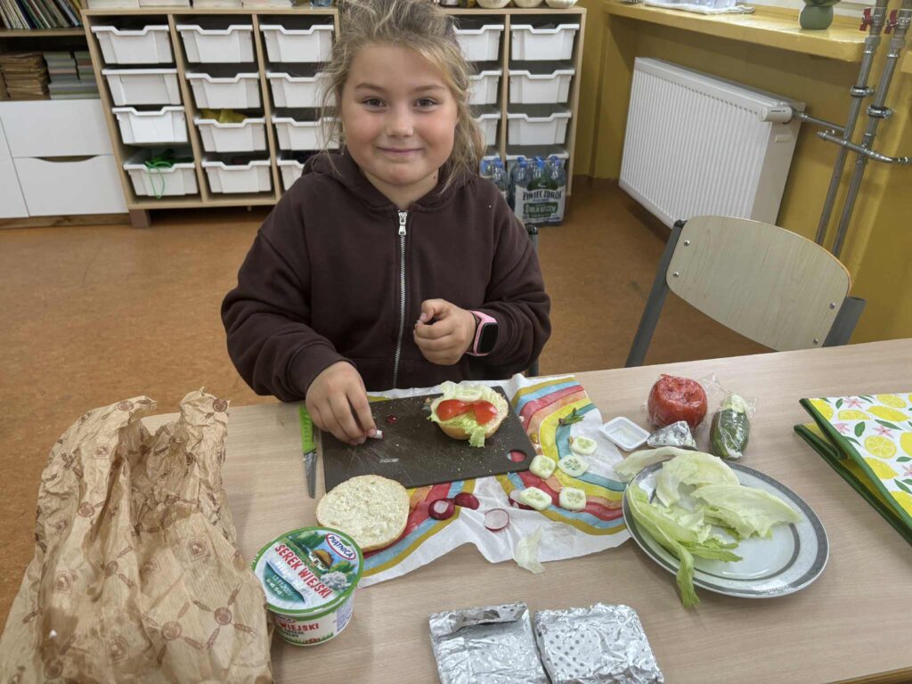 dzieci jednak lubią warzywa, a najlepiej smakują kanapki wykonane własnoręcznie, dlatego nawet największe niejadki zjadały swoją porcję z apetytem. Pierwszaki przy robieniu kanapek kształciły odpowiednie nawyki żywieniowe, dbałość o higienę podczas sporządzania posiłków oraz rozwijały