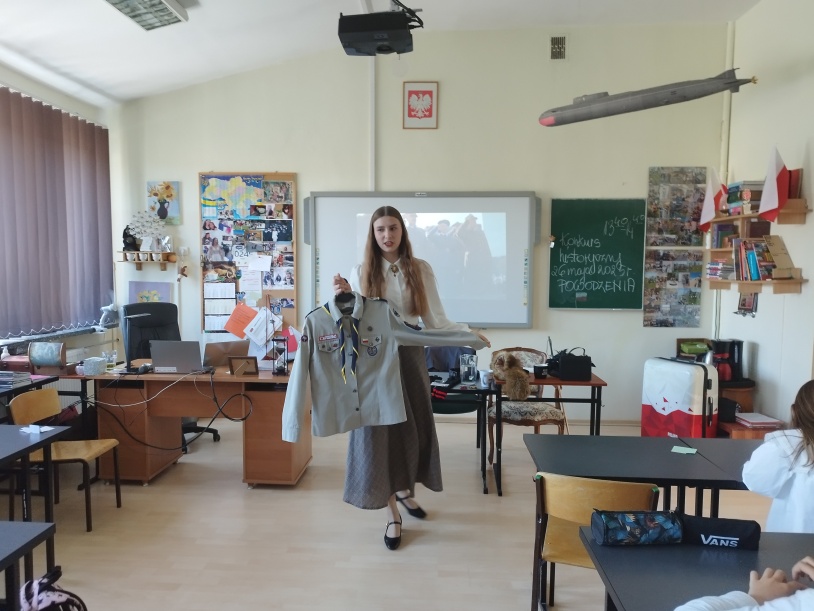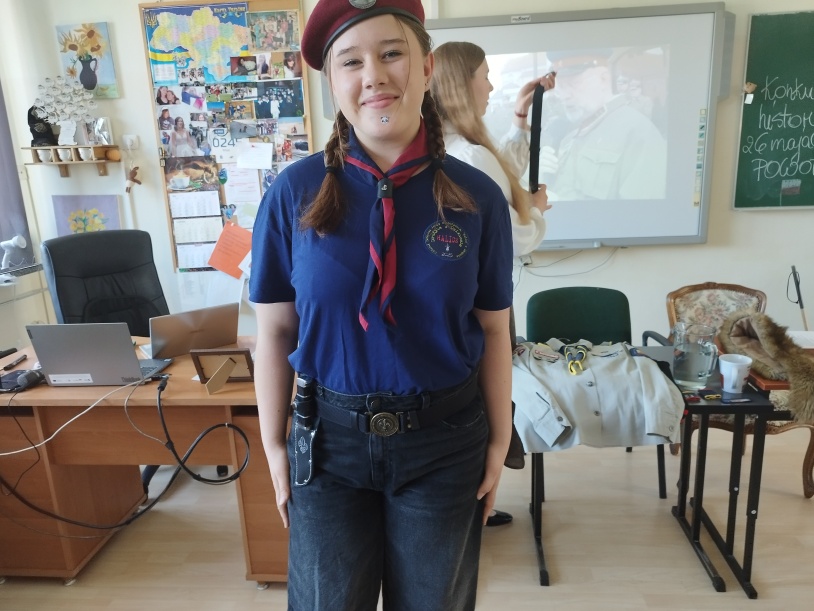 w zorganizowaniu spotkania w dniu 26 maja, na terenie naszej szkoły, za co serdecznie dziękuję. Ogromne wrażenie na uczestnikach koła historycznego zrobiły niewątpliwie elementy wyposażenia mundurowego: harcerska chusta, beret, czapka, pas oraz różnorodne odznaki. To była bardzo ciekawa i żywa prezentacja, dzięki której uczestnicy spotkania mogli z bliska przyjrzeć się symbolice i znaczeniu poszczególnych części stroju, a także lepiej