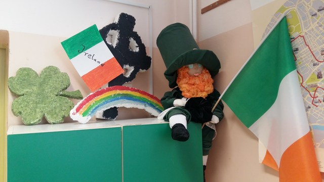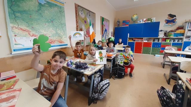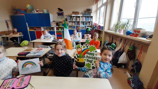 17 marca to Dzień Św. Patryka hucznie celebrowany w Irlandii oraz innych krajach anglojęzycznych. Tego dnia lekcje języka angielskiego w klasach 1 i 5 poświęcone były temu świętu. Uczniowie poznali historię Św. Patryka, legendę o irlandzkim skrzacie Leprechaun oraz symbole. Dowiedzieli się także jakie są zwyczaje i jak to święto obchodzone jest w poszczególnych krajach. Pierwszoklasiści uczestniczyli też w zabawie w rytm muzyki irlandzkiej.