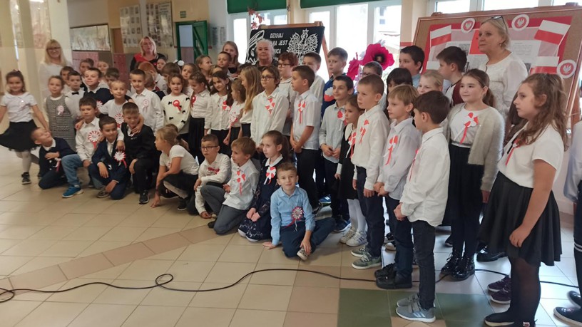 W przeddzień Narodowego Święta Niepodległości uczniowie klas I-III wzięli udział w ogólnopolskiej akcji, ogłaszanej każdego roku przez Ministerstwo Edukacji i Nauki, „Szkoła do hymnu”.