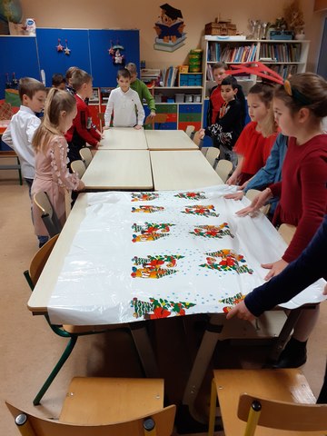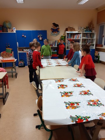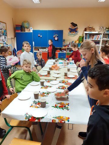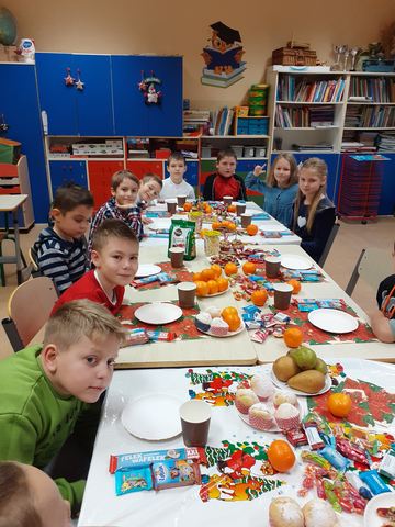 Jak co roku tradycją jest przygotowanie Wigilii w klasach. W tym roku dzieci samodzielnie przygotowały salę, udekorowały choinkę, nakryły do stołów a później pięknie wszystko posprzątały. Jestem bardzo dumna ze swoich uczniów. Dziękuję rodzicom za pomoc w przygotowaniu babeczek i ciasta oraz za bardzo duże ilości owoców i słodyczy, które wystarczą dzieciom na cały styczeń. Pozdrawiamy serdecznie koleżanki i kolegów, którzy nie mogli być w tym dniu z nami.