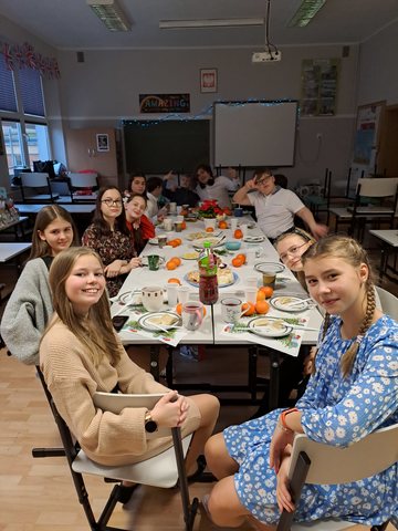 20 grudnia 2022 r. uczniowie klasy 6 b wzięli udział w spotkaniu świątecznym, podczas którego złożyli sobie życzenia oraz wymienili drobne upominki.