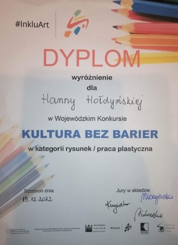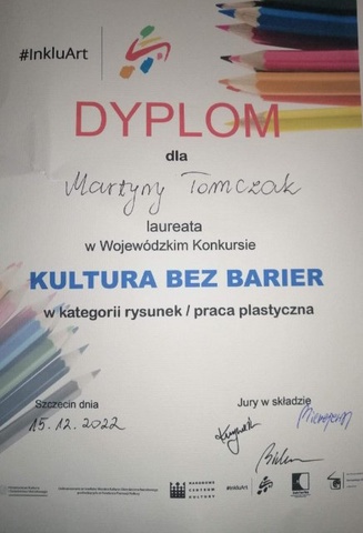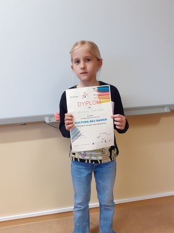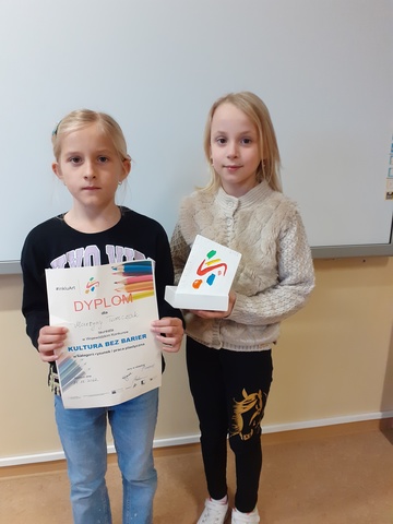 Jest mi bardzo miło poinformować, że uczennice klasy 2 a wzięły udział w Konkursie Wojewódzkim „KULTURA BEZ BARIER”– kategoria rysunek/praca plastyczna. Martynka Tomczak została laureatką konkursu plastycznego a wyróżnienie otrzymała Hania Hołdyńska. Temat konkursu był bardzo trudny . Jestem dumna ze wszystkich dzieci, które wzięły w nim udział.