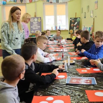 Poprowadził ją bosman Grzegorz Oleszczuk oraz pani Karina Staniszewska. Podczas lekcji uczniowie dowiedzieli się jak ważna jest Niepodległość, co to jest Święto Niepodległości i jak je obchodzimy. Uczniowie mieli okazję zapoznać się z wystawą pt. „Ojcowie Niepodległości” oraz wykonać prace plastyczne dotyczące zbliżającego się Święta.