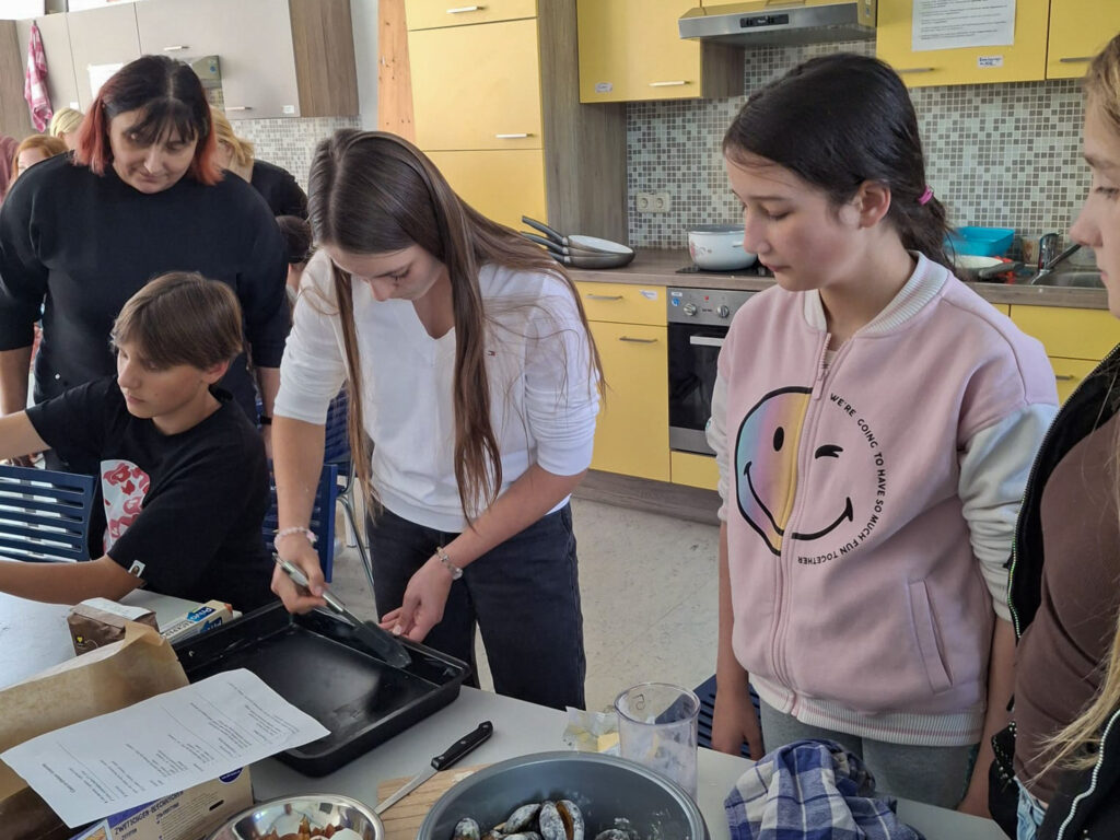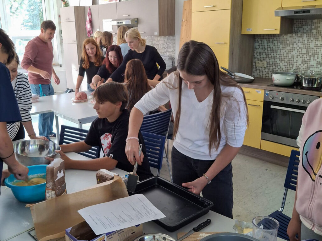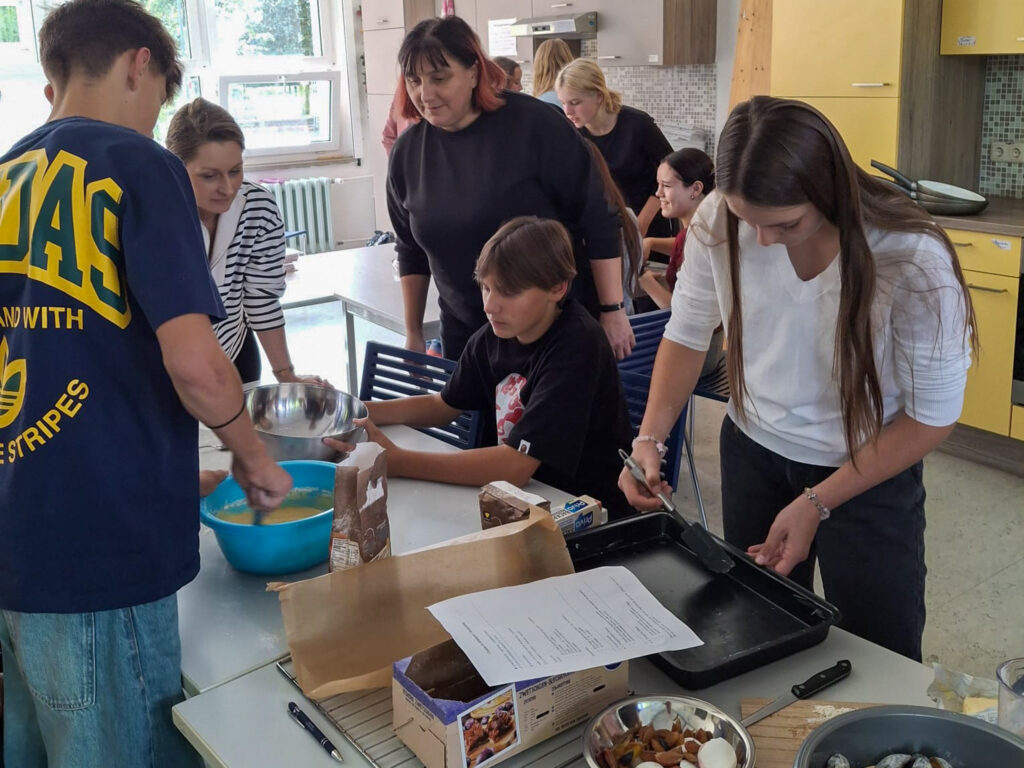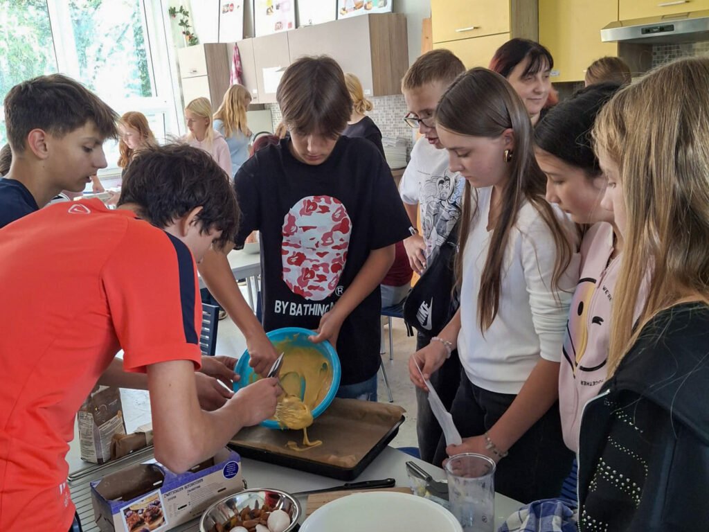 Jednak wymiana to nie tylko nauka – to także budowanie relacji. Wspólne gotowanie i pieczenie ciast stało się okazją do integracji, rozmów i śmiechu, a także do poznawania smaków i tradycji obu krajów. W tych chwilach młodzież mogła ćwiczyć swoje umiejętności językowe, rozwijać otwartość na inne kultury oraz po prostu cieszyć się sobą nawzajem.