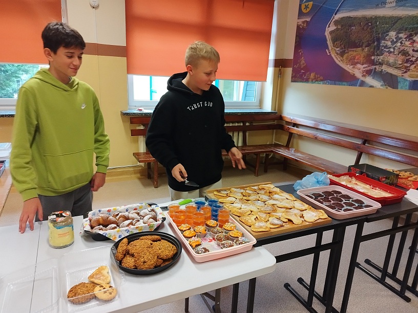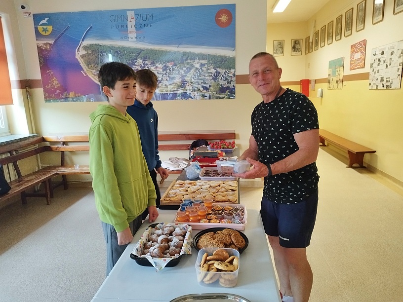wdzięczność, zatem niech dopełnią je liczne zdjęcia. Dziękujemy także pracownikom Miejskiej Biblioteki Publicznej w Dziwnowie. Zaskoczyło nas także liczne przybycie pracowników Zakładu Wodociągów i Kanalizacji w Dziwnowie, z panem prezesem Sebastianem Mamzerem na czele. W tym przypadku także zdjęcia niechaj dopełnią tego, czego słowa wyrazić nie mogą (patrz zdjęcia). I na koniec Rodzice, którzy pofatygowali się do szkoły, dając nam także swoją obecnością wsparcie, bezcenne (patrz zdjęcia). Jako pierwszy, jak zwykle przybył pan Marcin Około-Kułak, dając swoim wsparciem siłę na cały dzien. I tak dzięki wszystkim wymienionym osobom udało się zarobić 1500 zł. Zgodnie z założeniem połowa została przelana na konto Fundacji Zarys, a druga połowa trafiła do szkolnego sejfu, zasilając budżet Samorządu Uczniowskiego. Na koniec trafny, moim zdaniem cytat „ Można