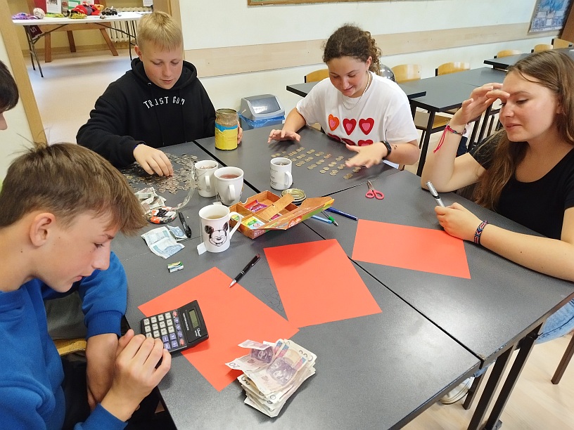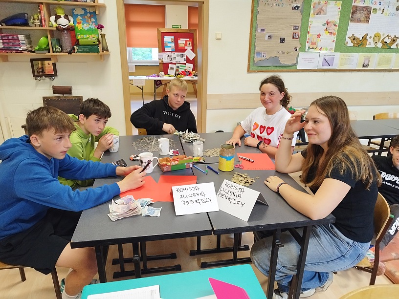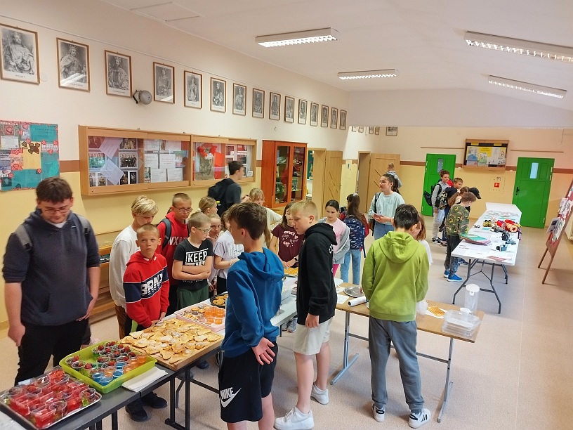 W dniu 23 maja 2024r. od godziny 8.45 do godziny 10.45, na szkolnym korytarzu miała miejsce ostatnia, w tym roku szkolnym, akcja charytatywna połączona z realizacją projektu historycznego. Zgodnie z planem, kolejny raz zbieraliśmy 50%/50% , czyli połowa na cykliczne już wsparcie Fundacji Zarys, która regularnie pomaga ukraińskim szpitalom, wciąż w strefie wojny. Jesteśmy niezmiennie solidarni ze zwykłymi ludźmi takimi jak My
