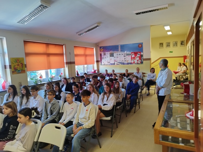 Wówczas scenariusz wykorzystałam z klasą, której byłam wychowawczynią, niezapomnianą 8a. Szkolne wydarzenie okazało się strzałem w dziesiątkę, zatem w tym roku szkolnym zaproponowałam współpracę klasie 4a. W ramach realizacji projektu międzyprzedmiotowego (język polski-historia) wraz z wychowawczynią tejże klasy panią Kamilą Bieć przygotowałyśmy sztukę w nowej odsłonie. 24 kwietnia 2025r.